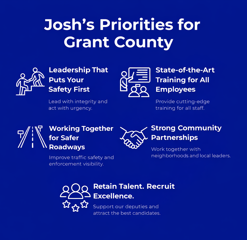 I’m running for Grant County Sheriff, because I believe our community deserves leadership that does the right thing for the right reason.